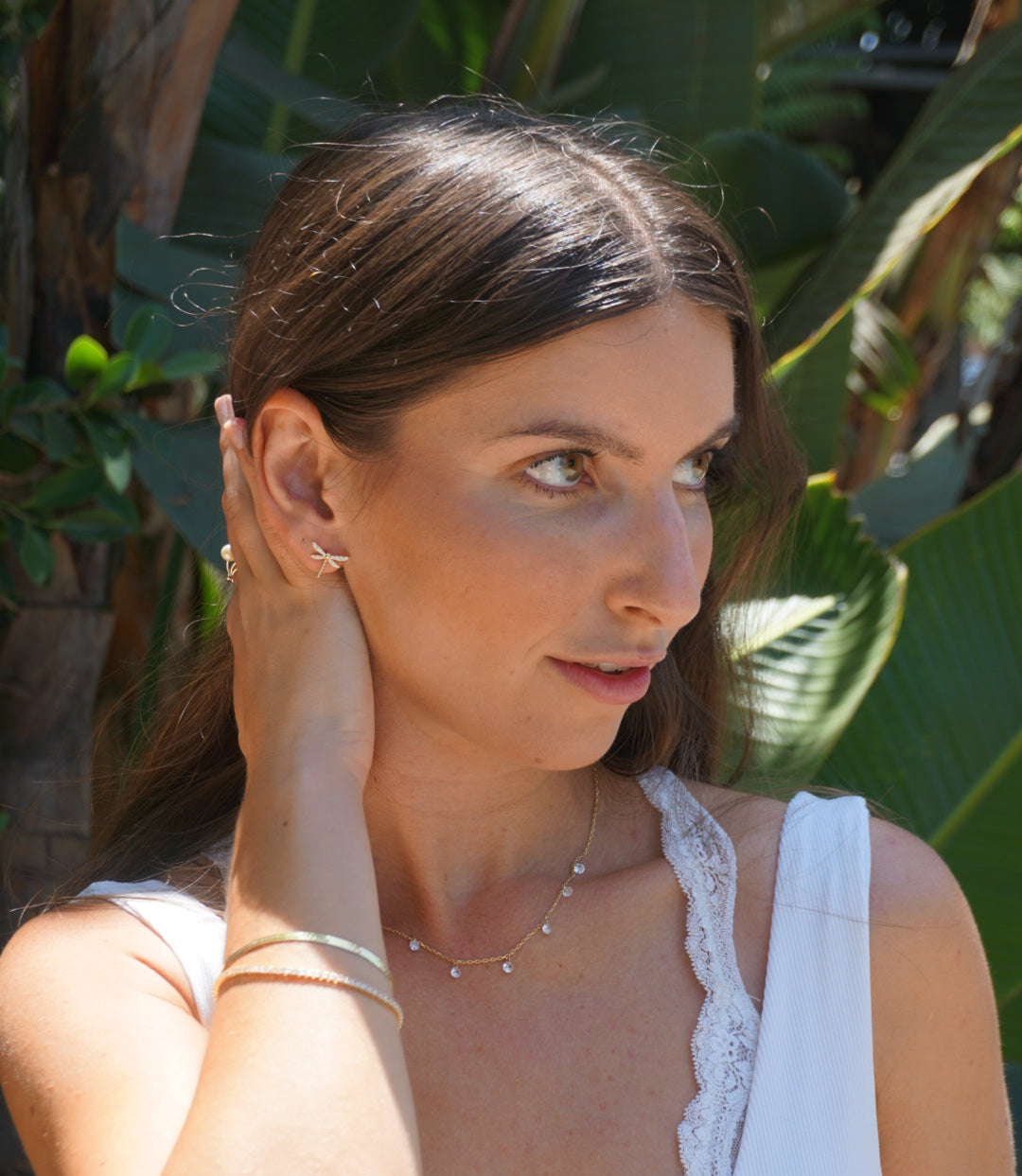 Mini dragonfly studs gold over sterling silver with cubic zirconia