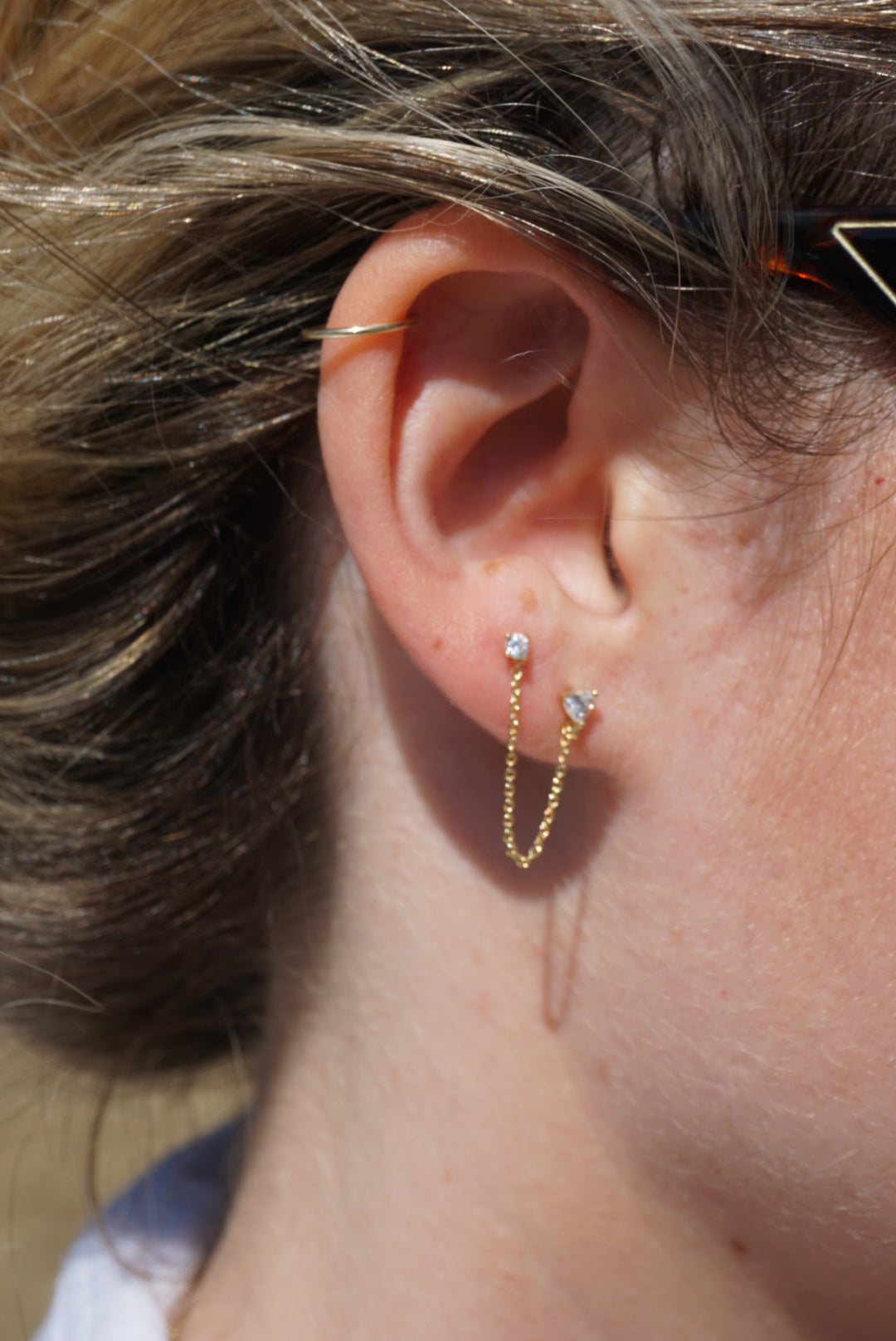 Huggie chain drop earrings gold over sterling silver with bezel- cubic zirconia