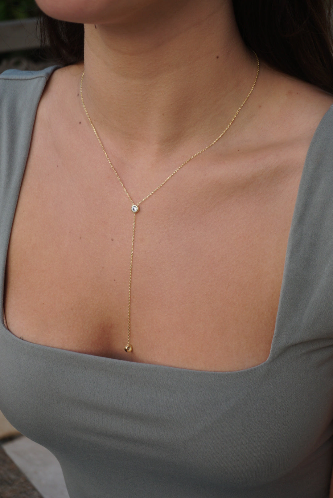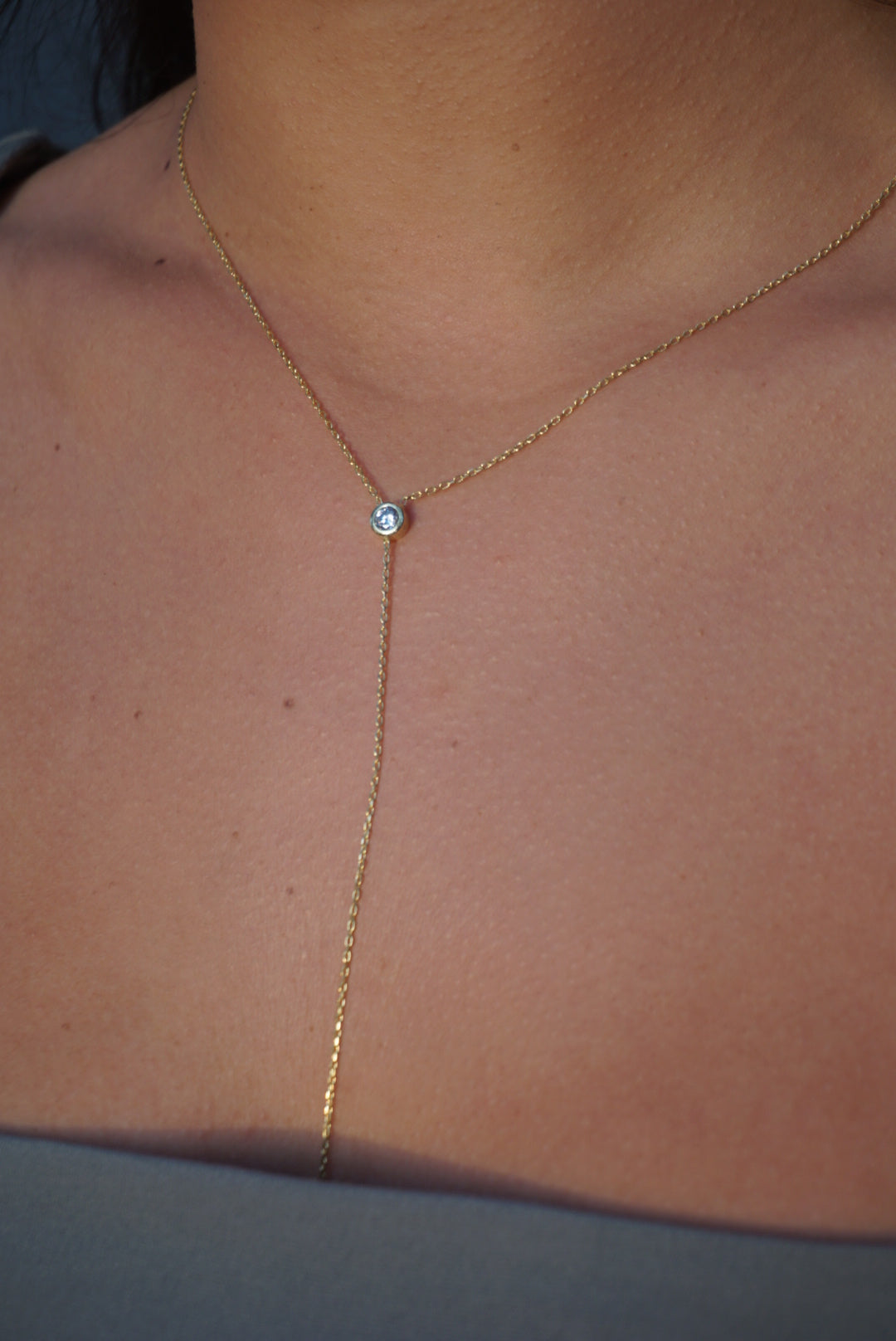 Bezel cubic zirconia Y necklace gold over sterling silver