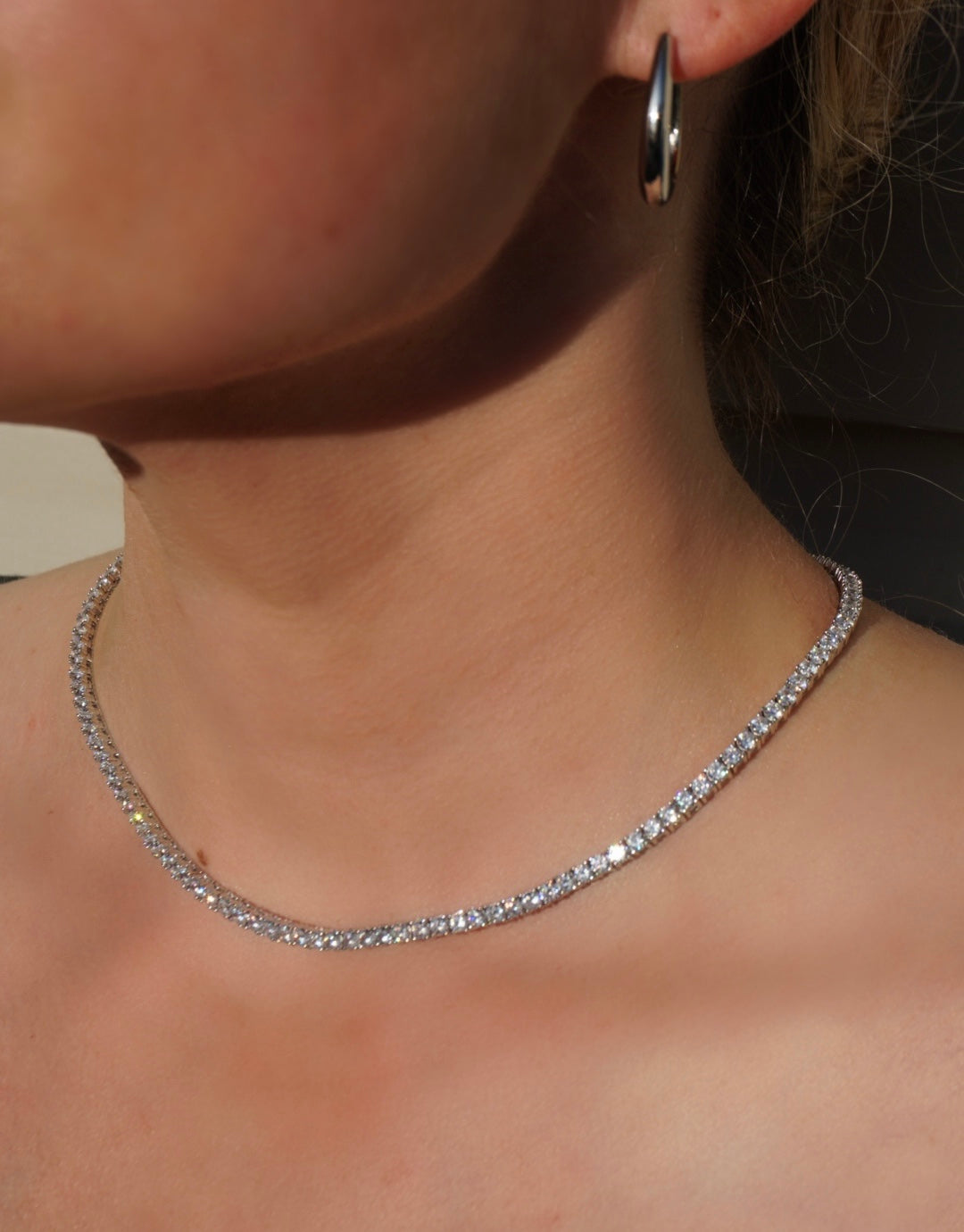 3mm tennis necklace gold or rhodium over sterling silver with cubic zirconia 16"